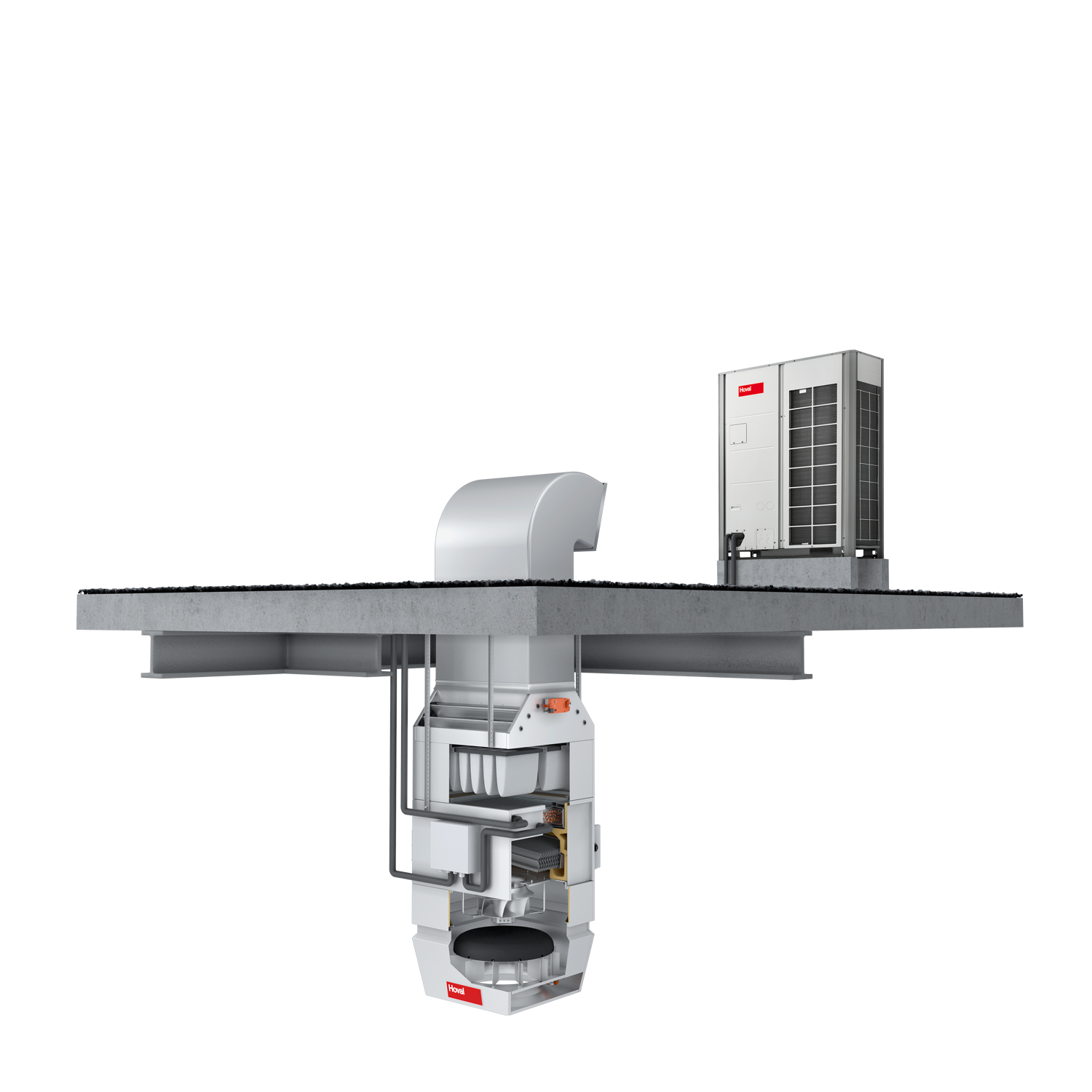 - un TopVent avec pompe à chaleur pour le chauffage et le refroidissement décentralisés (MP).